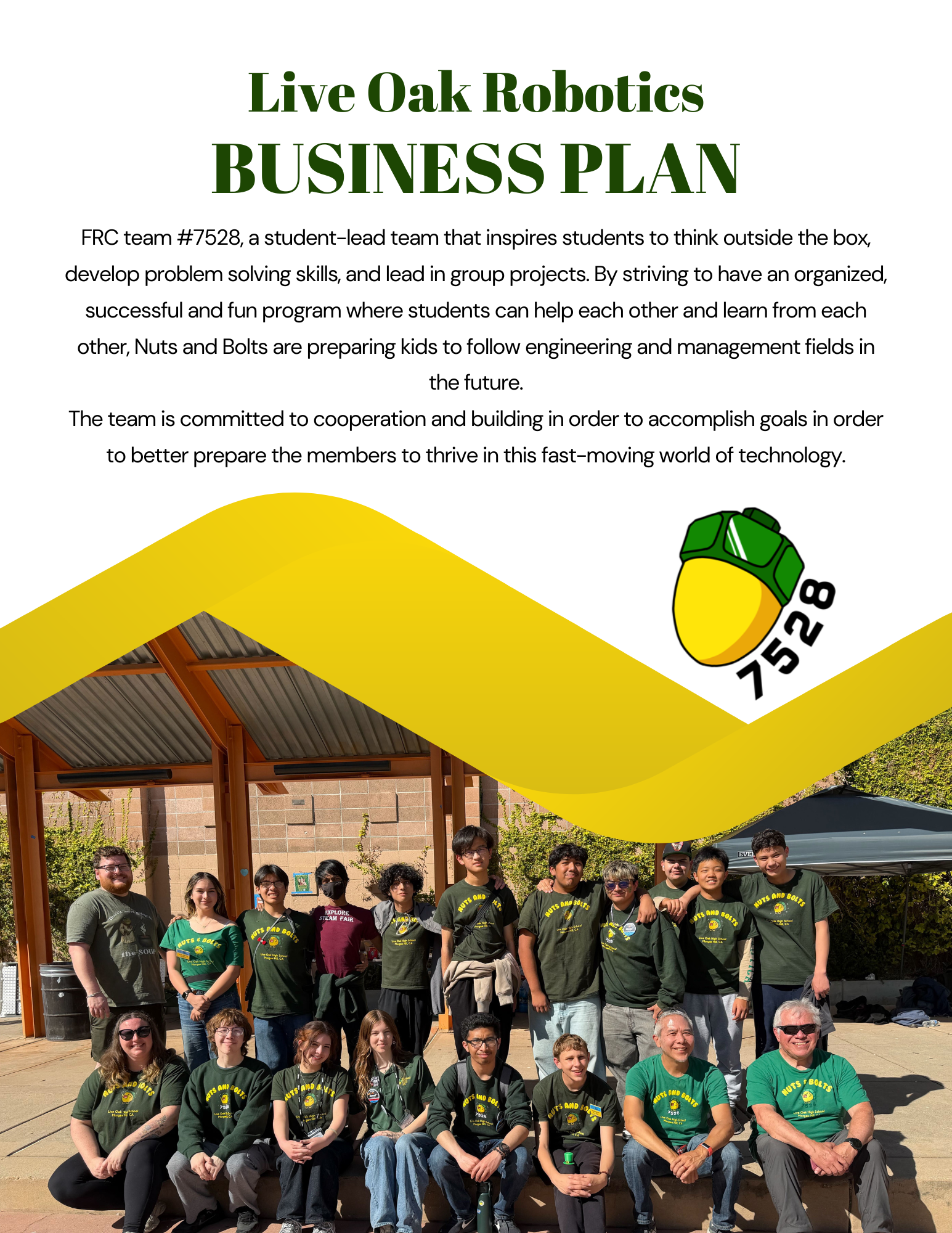 Nuts and Bolts Robotics was founded in 2018 out of Live Oak High School in Morgan Hill, CA. Since then, we have worked to inspire students to become leaders in the STEM field, grown our team, built robust competitive robots, and encouraged community involvement and exploration of robotics.