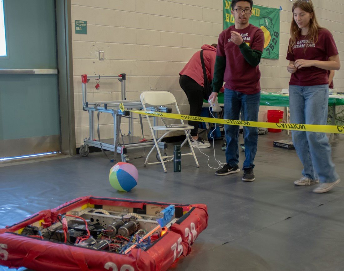 “Members of Live Oak High School’s “Nuts and Bolts” club, FIRST Robotics Competition team #7528, demonstrate their mechatronic know-how with their testing robot at the Jan. 24 Explore STEAM Fair in Morgan Hill.” The Morgan Hill Times - Students explore STEAM at Morgan Hill community event